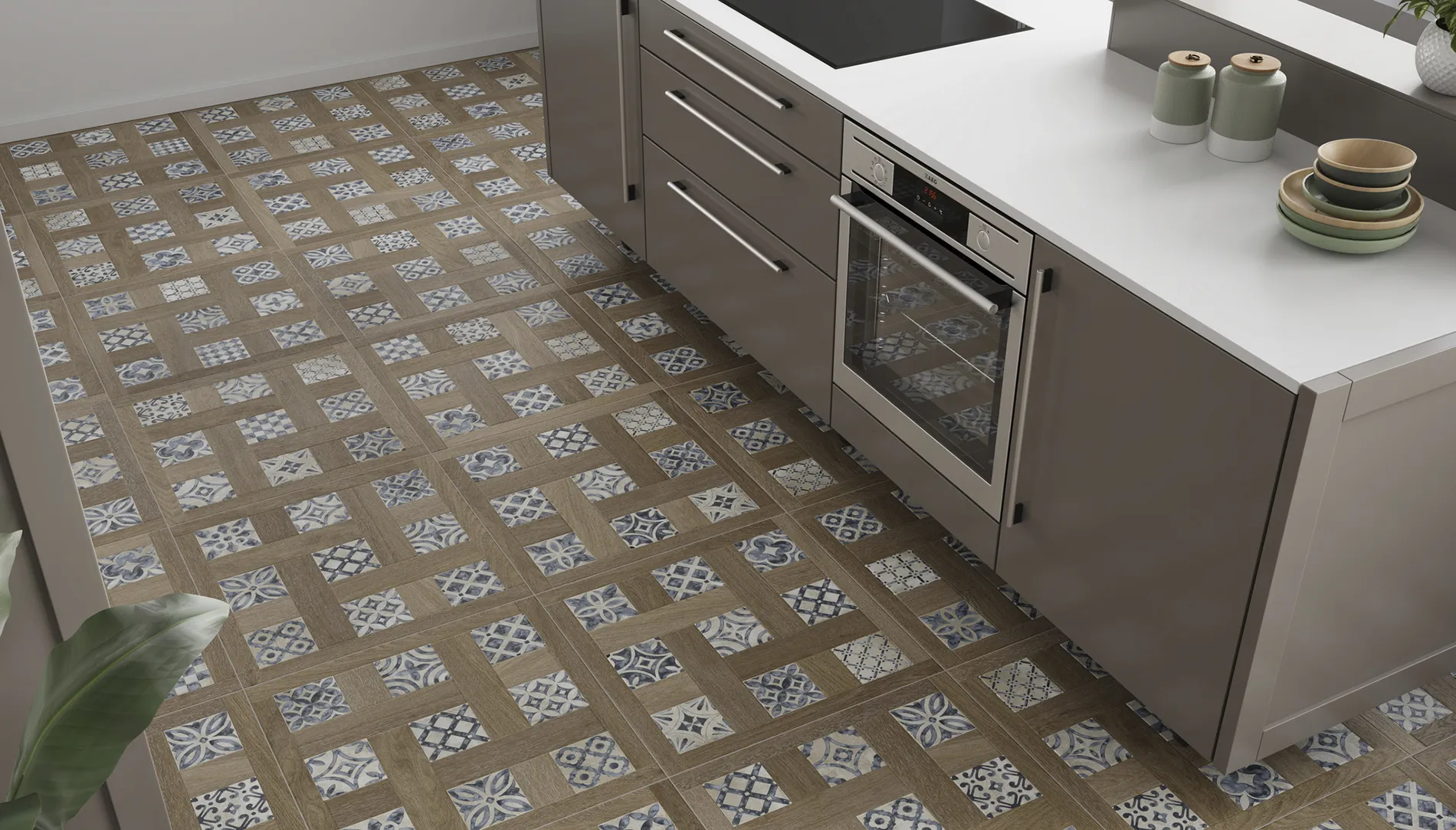 Pločice su namenjene za podne i zidne površine, a zahvaljujući raznovrsnim dekorima omogućavaju kreiranje autentičnih i dinamičnih prostora. Kombinacija geometrijskih šara i drvenih tonova daje prostoru karakter i vizuelnu dubinu.