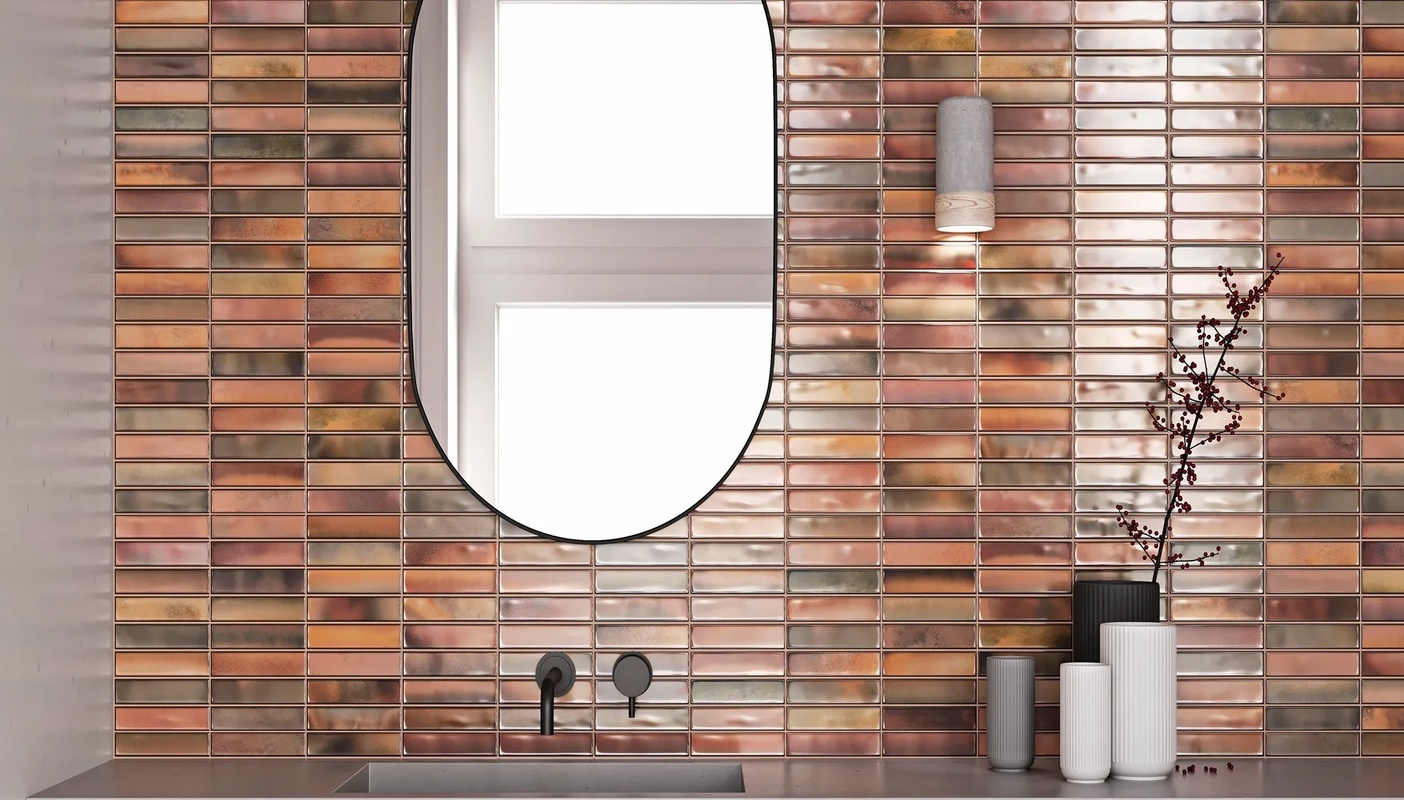 Borealis garnet15x30. Serija Borealis donosi bogatu paletu boja i izražajnu površinu inspirisanu ručno rađenim keramičkim pločicama. Sa varijacijama u tonu i teksturi, svaka pločica ima jedinstven karakter, stvarajući dinamičan i živahan zidni prostor.