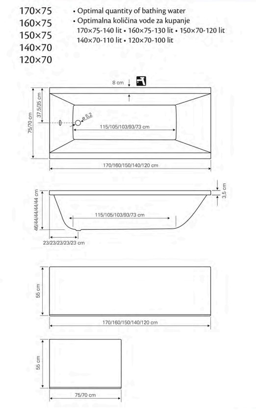 naziv : Kada 120x70 Jasmin ugradna proizvođač : Roper co. zemlja porekla: Srbija dimenzije : 120x70 materijal : akril boja : bela ojačanje : stakleni mat, poliesterska smola način montaže : univerzalan Calypso co. Niš