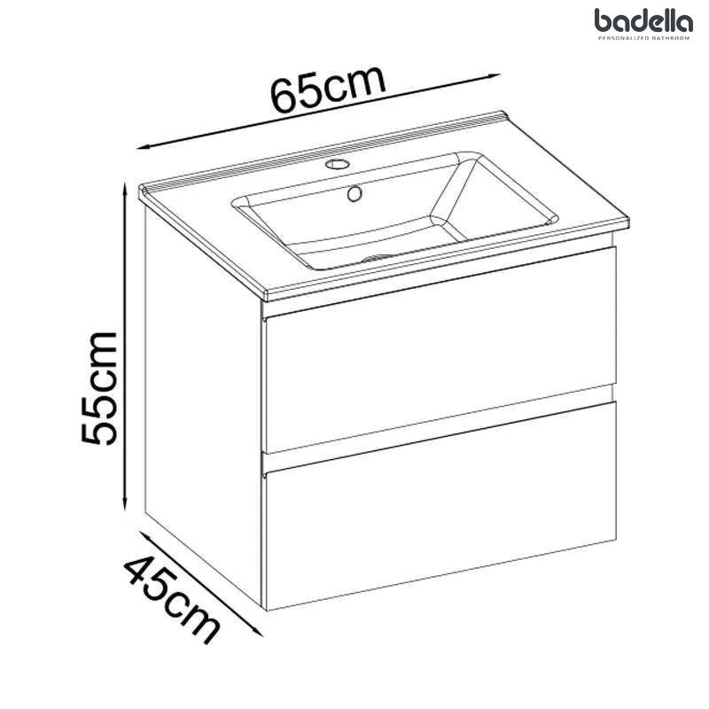 Keramički lavabo sa otvorom za bateriju Montaža: Zidna Dve soft close fioke