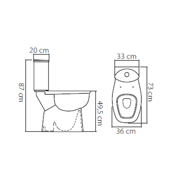 proizvođač : Turkuaz zemlja porekla : Turska dimenzije : 360x730x870 boja : bela materijal : keramika odvod : u pod (simplon) wc daska : adekvatna od zida do centra odvoda x