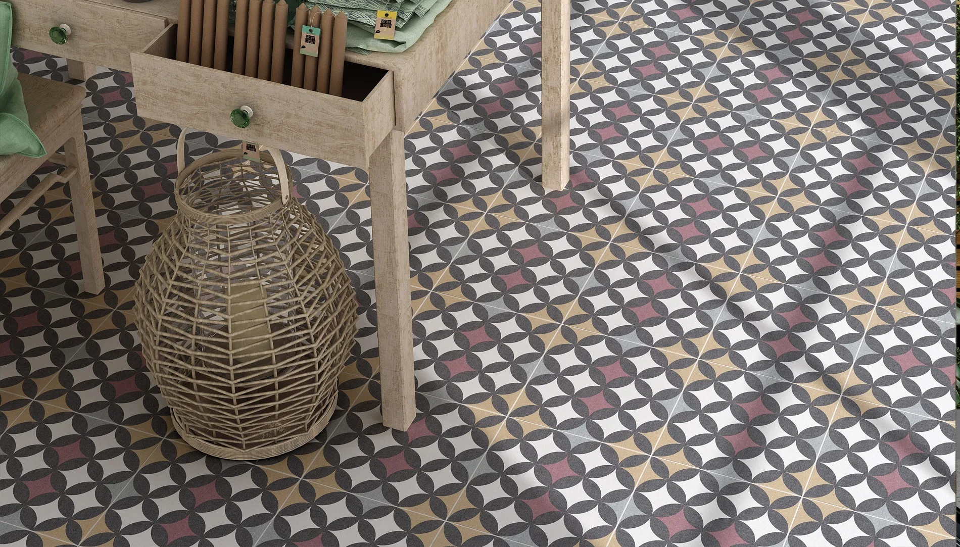 Karakteristika ovih pločica je da više komada zajedno formira celinu – ponavljajući geometrijski ili ornamentalni dezen koji stvara upečatljiv vizuelni efekat. Zbog toga su posebno popularne kao dekorativne pločice za kupatilo, kuhinju, hodnik ili akcentne zidove.