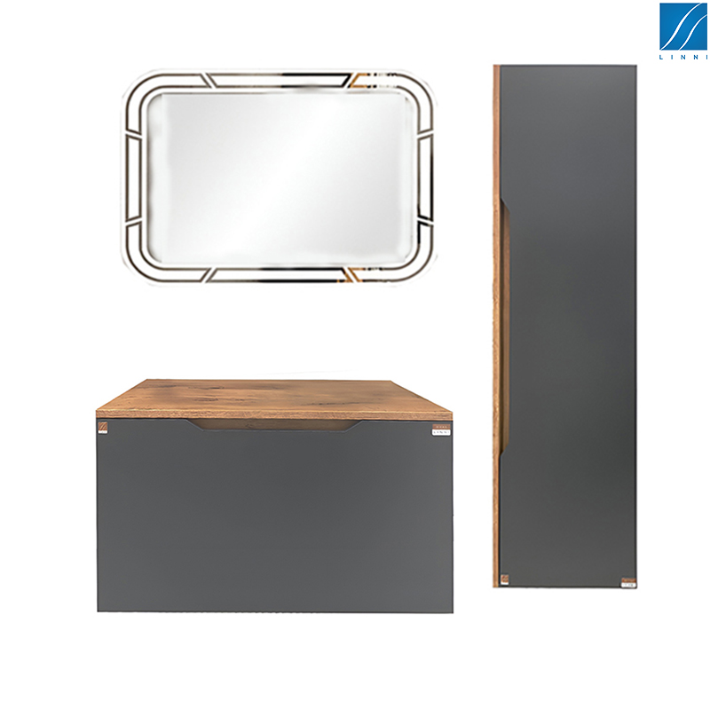 - ormarić sa pločom za nadgradni lavabo - boja : siva/tekstura drveta - materijal : iverica/medijapan