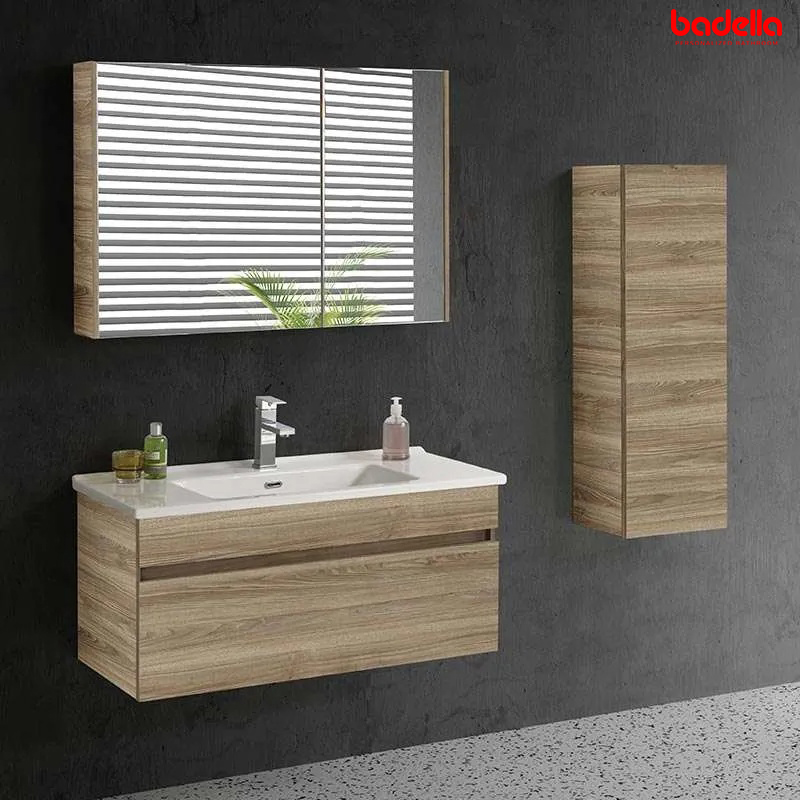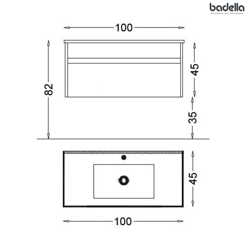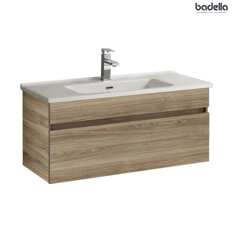Tuna Kalemisi ormarić sa umivaonikom Keramički lavabo Ormarić sa fiokom Materijal vrata: MDF zaštićena melaminom Materijal stranice: MDF zaštićene Kelemisi melaminom Braon boje tekkstura drveta Dimenzije ormarića: 100x41x45cm Dimenzije umivaonika: 45x100cm