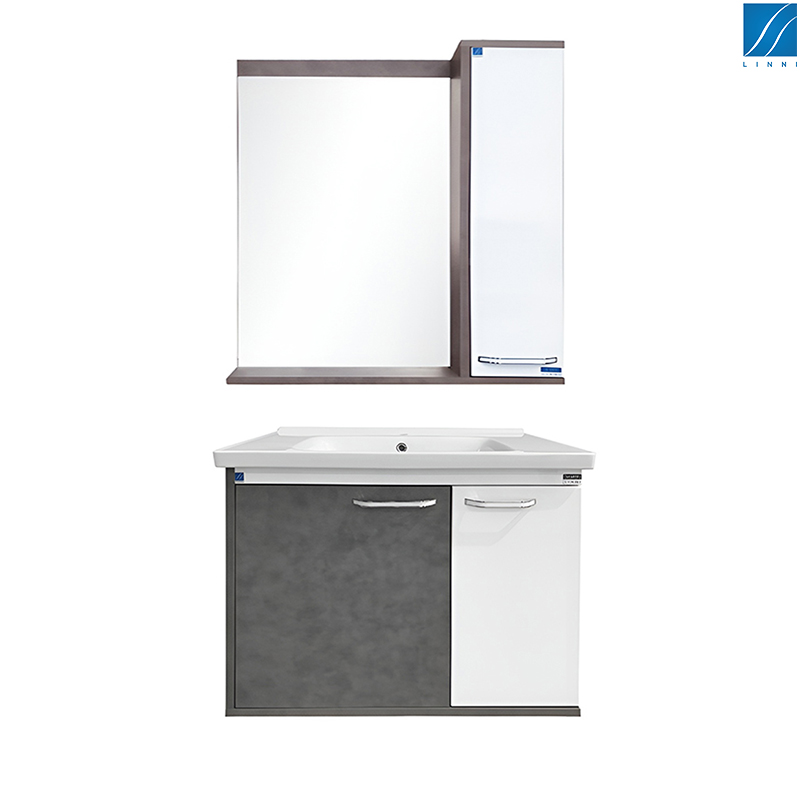 - ogledalo sa ormarićem - boja siva/bela - materijal medijapan/iverica - vrata sa usporivačem