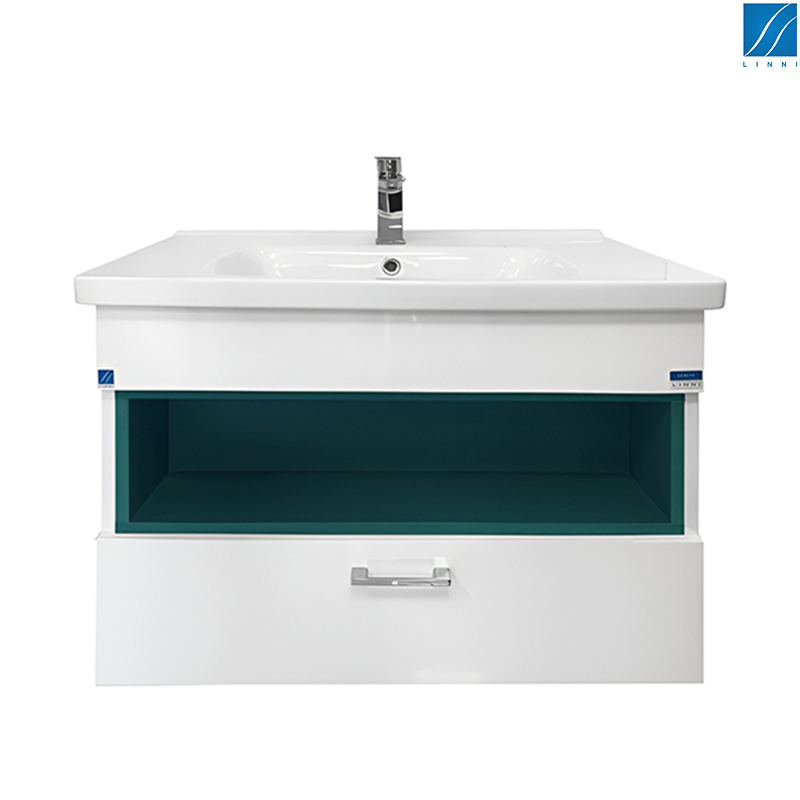 - ormarić sa lavaboom - boja bela/zelena - materijal medijapan/iverica - fioka sa usporivačem